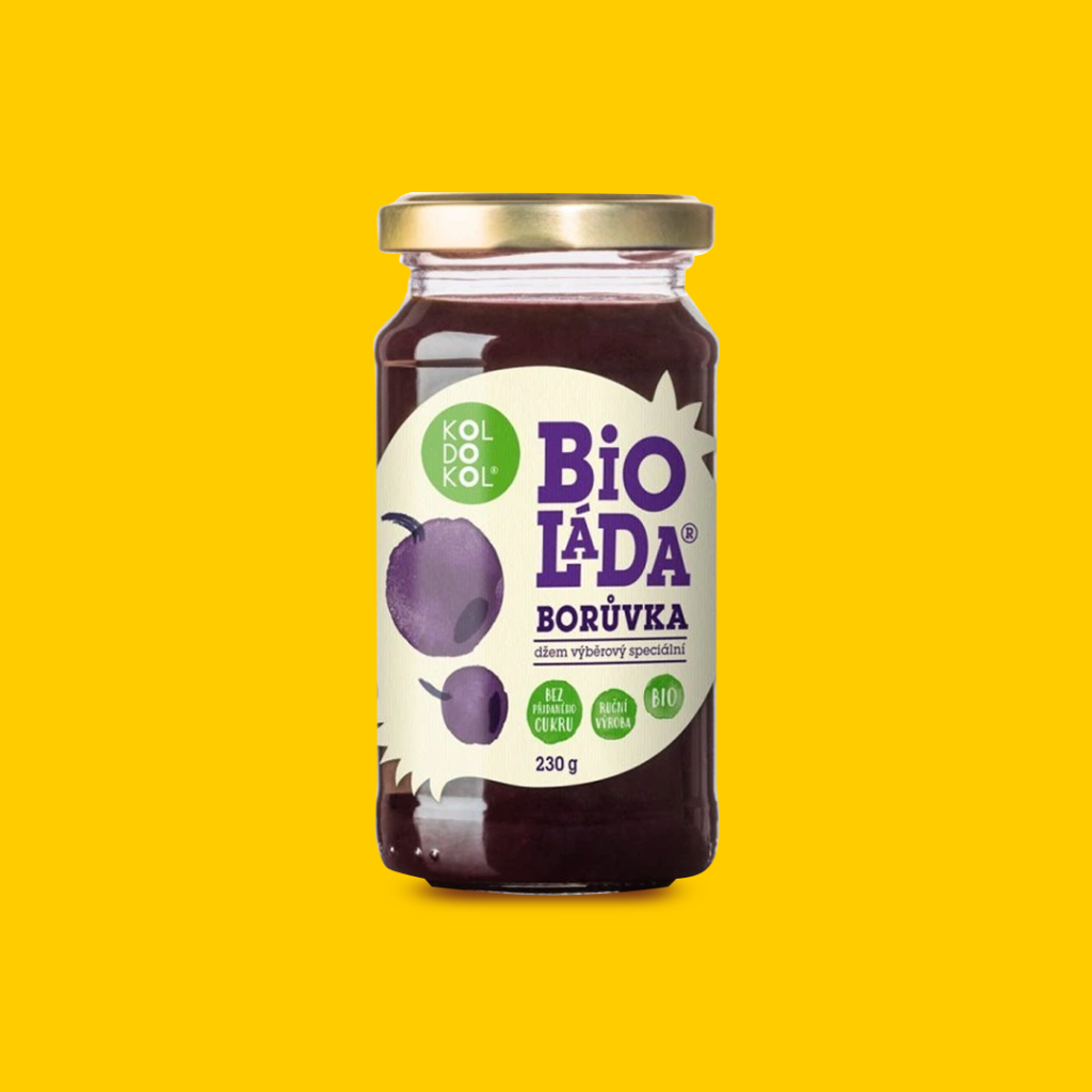 Bioláda® Borůvky Bio džem úžasně plné a opravdové chuti sladíme koncentrovanou šťávou z 1,2 kg jablek. Hmotnost obsahu: 230 g Podíl ovocné složky: 98 % V každé sklenici: 113 g borůvek Želírující látka: výtažek z mořských řas agar a alginát sodný 100 g výrobku obsahuje 49 g borůvek