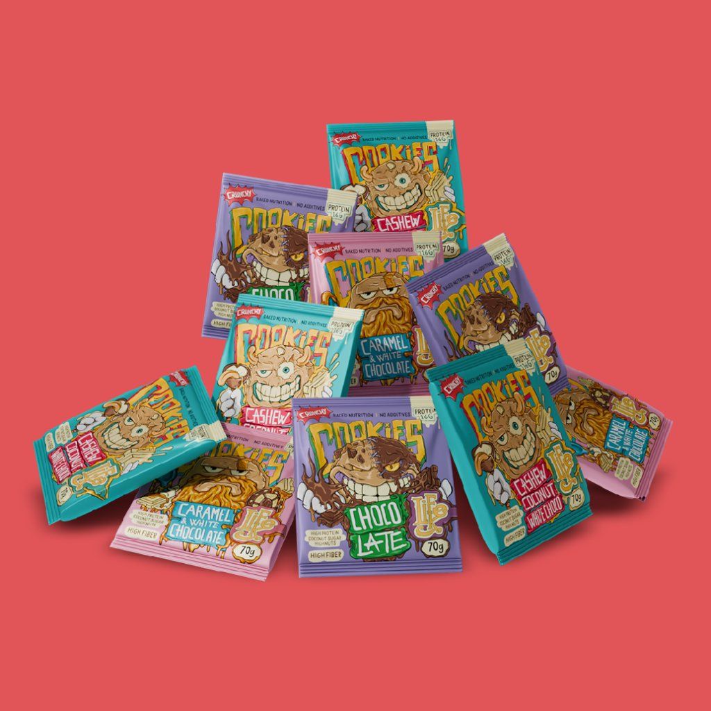 Uvnitř najdeš 12 cookies, které spojují poctivé složení, jemnou strukturu a vyváženou chuť. Větší, výraznější a sytější – přesně tak, aby tě zasytíly a podpořily v každodenním tempu.