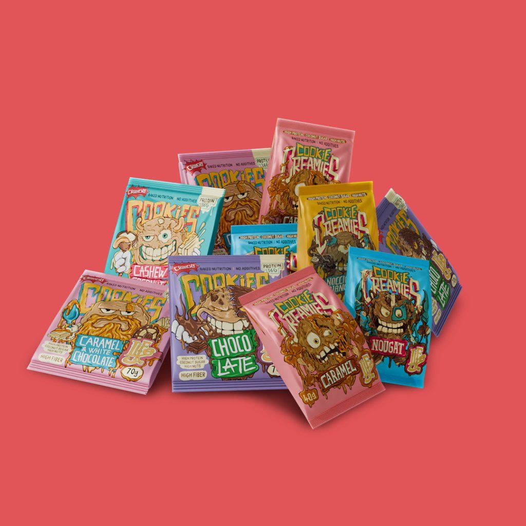 Získáš tak ideální kombinaci větších, sytějších cookies a jemnějších, rychlých snacků, které se hodí přesně podle toho, co tvůj den zrovna potřebuje. Ráno, před tréninkem, po něm nebo mezi schůzkami – každý kousek ti dodá energii i bílkoviny, když je nejvíc potřebuješ.