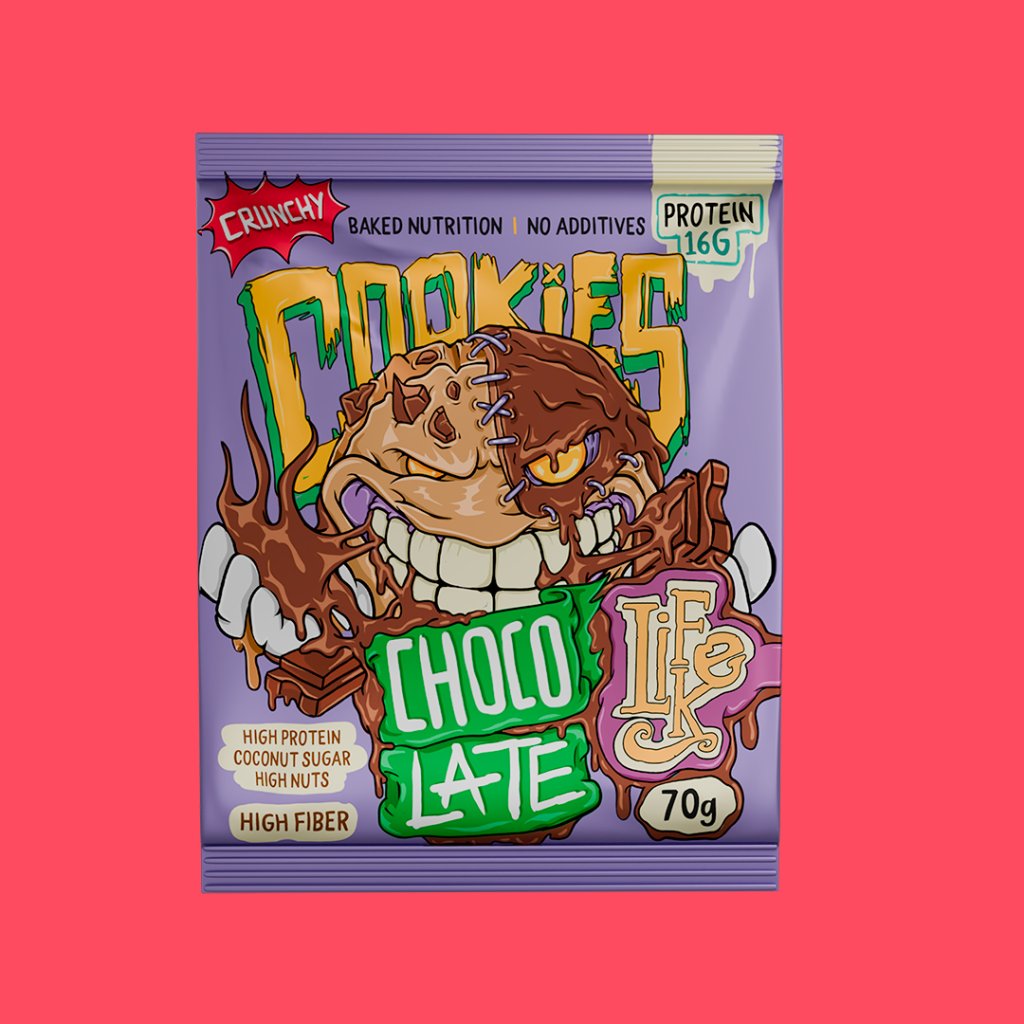 Naše Protein Cookie je ručně pečená sušenka nabitá bílkovinami, oříšky a čokoládou. Kombinuje mléčný protein, arašídy, kešu a směs bílé a hořké čokolády do křehké, vláčné a poctivě syté dobroty.