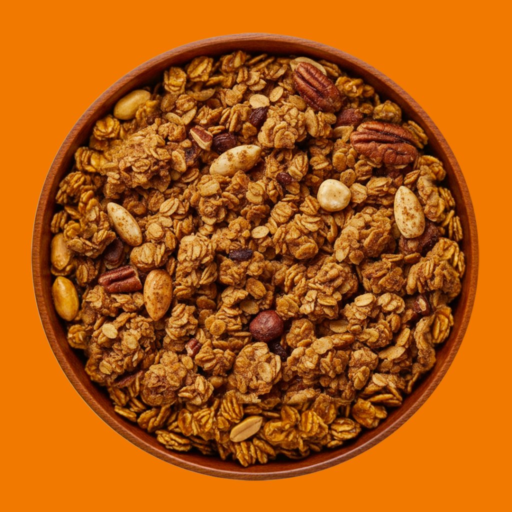 Zapečená směs bezlepkových ovesných vloček, vybraných ořechů a výrazné skořice. Spojení medu, mandlí, pekanových a lískových ořechů vytváří plnou, hřejivou chuť s přirozenou sladkostí a jemně kořeněným charakterem.