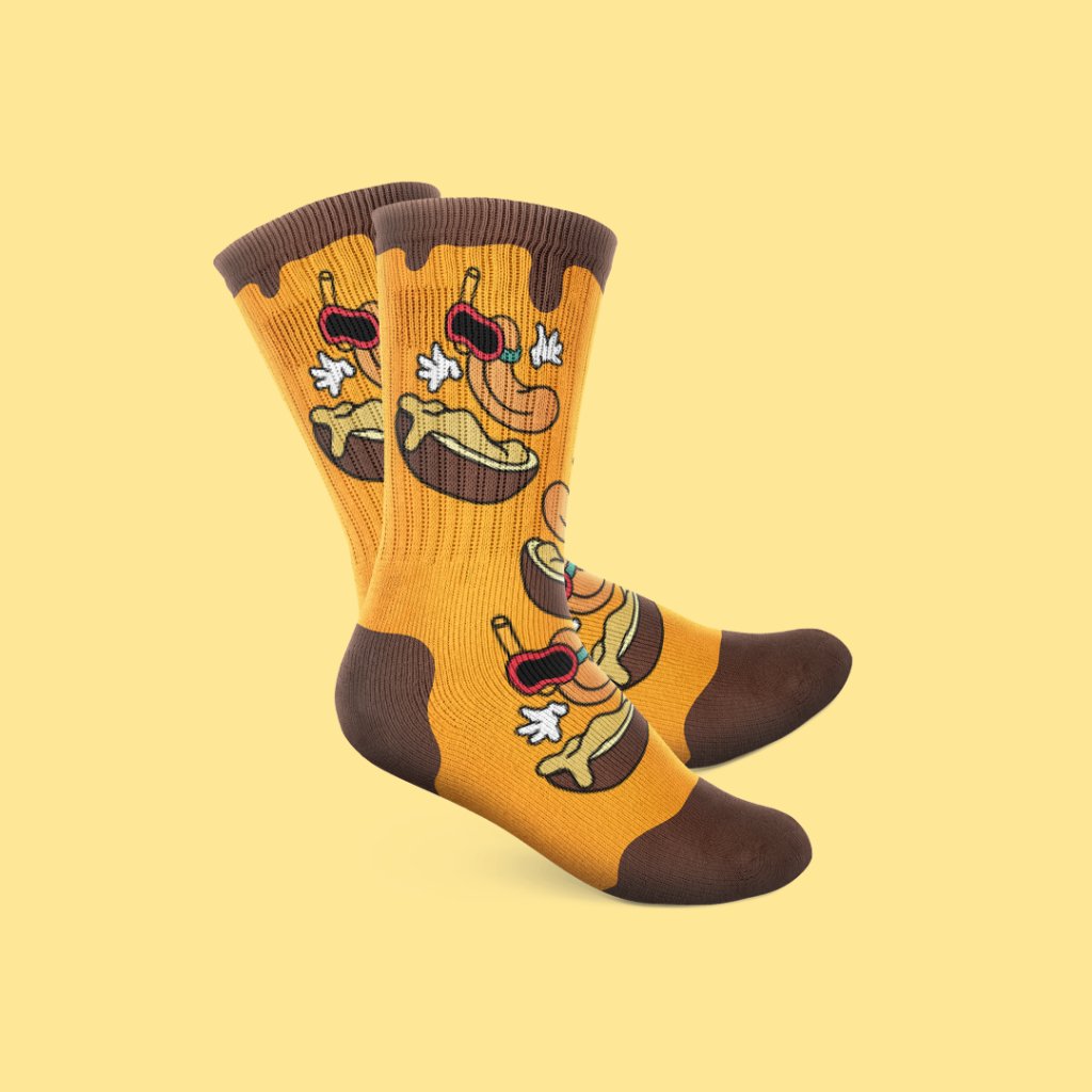 PONOŽKY peanut Ujíždíš si na arašídovém másle? Máme pro tebe speciální ponožky s arašídovým motivem. Vylaď svůj outfit originálním kouskem oblečení z řad LifeLike produkce. Kvalitní bavlna vytvoří pohodlí pro tvoje nohy při každém kroku. Vybírat můžeš ze dvou velikostí.